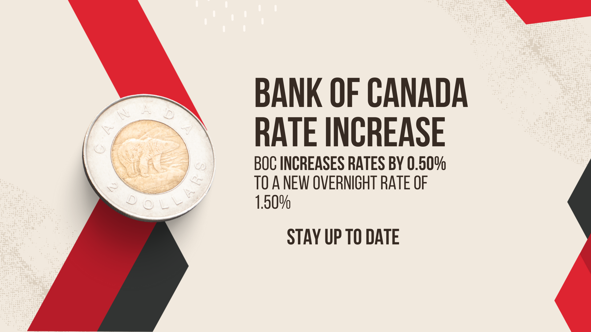 Bank of Canada increases rates by 0.50% to a new overnight rate of 1.50%