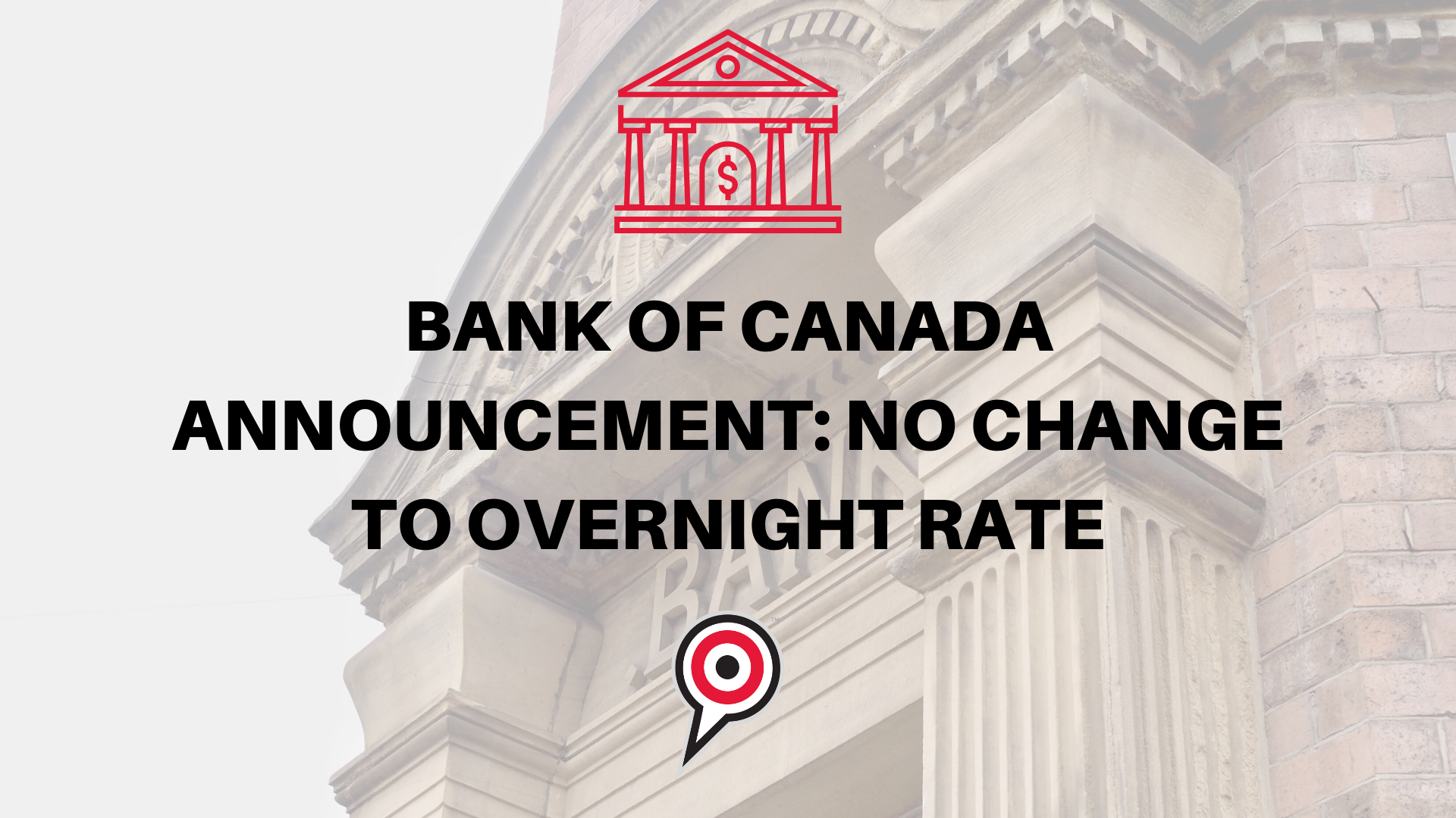 The Bank of Canada announced that its key interest rate target is on hold at 0.25 percent.