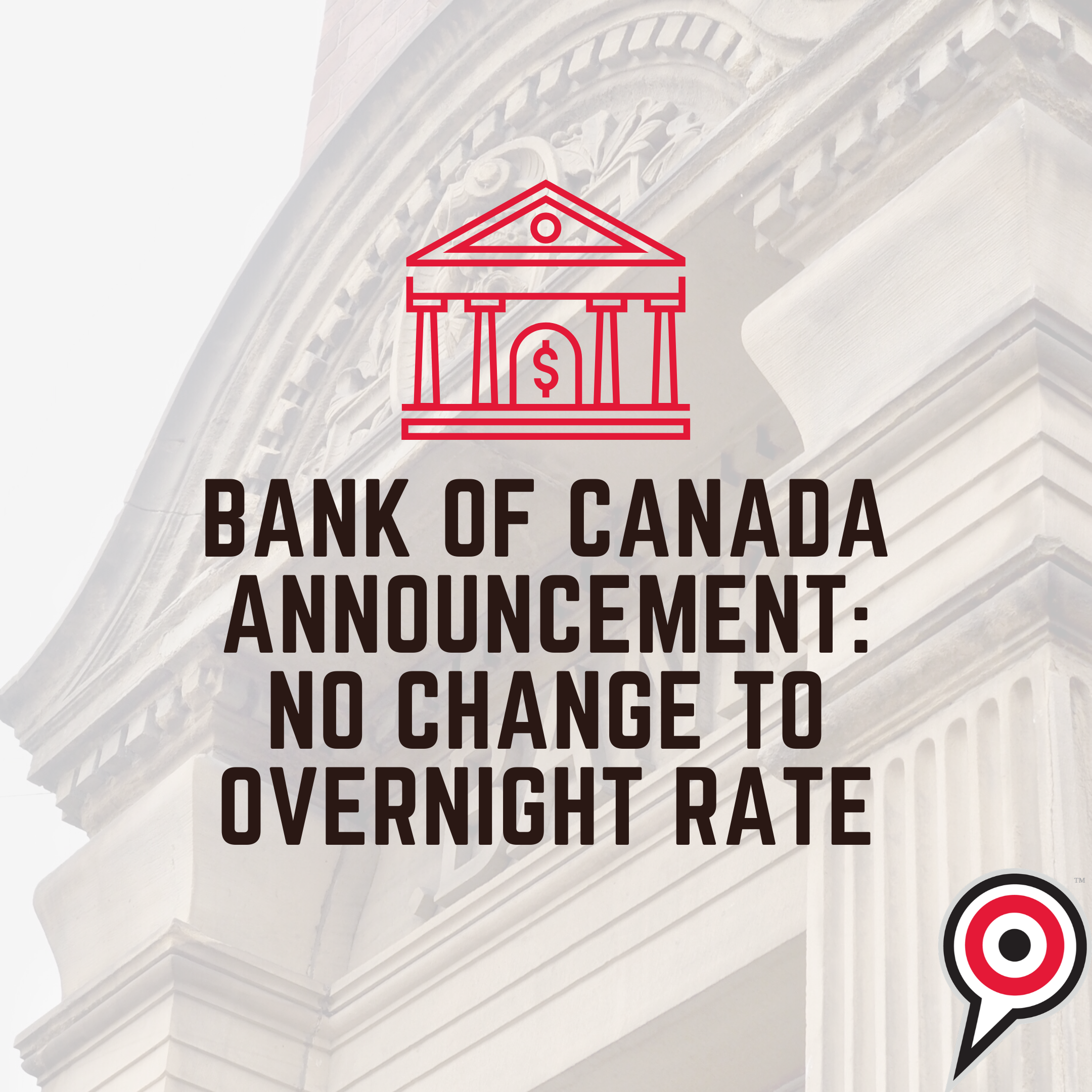 The Bank of Canada announced that its key interest rate target on hold at 0.25 per cent.