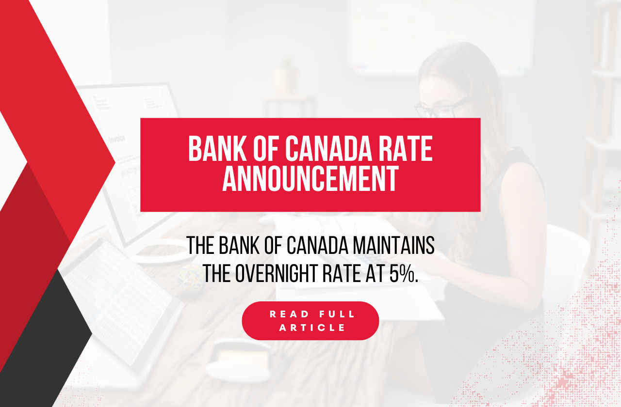 Bank of Canada announces it will maintain the overnight rate at 5%.