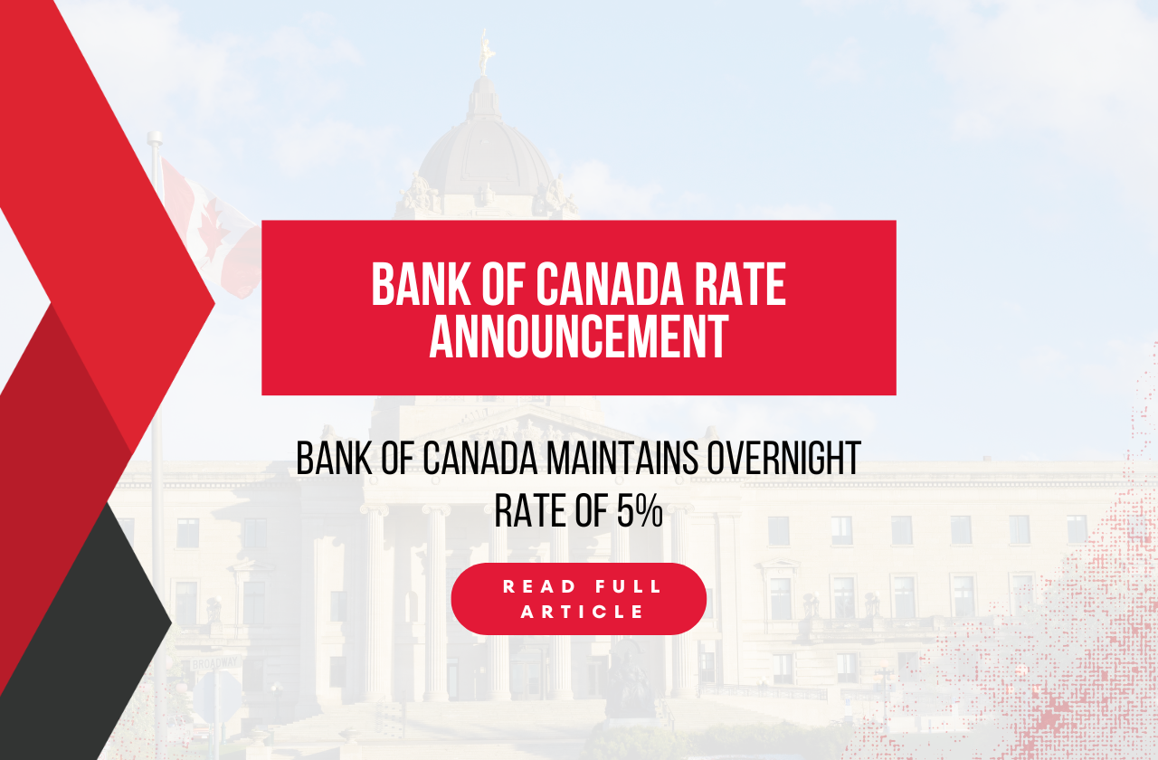 The Bank of Canada maintains overnight rate of 5%.